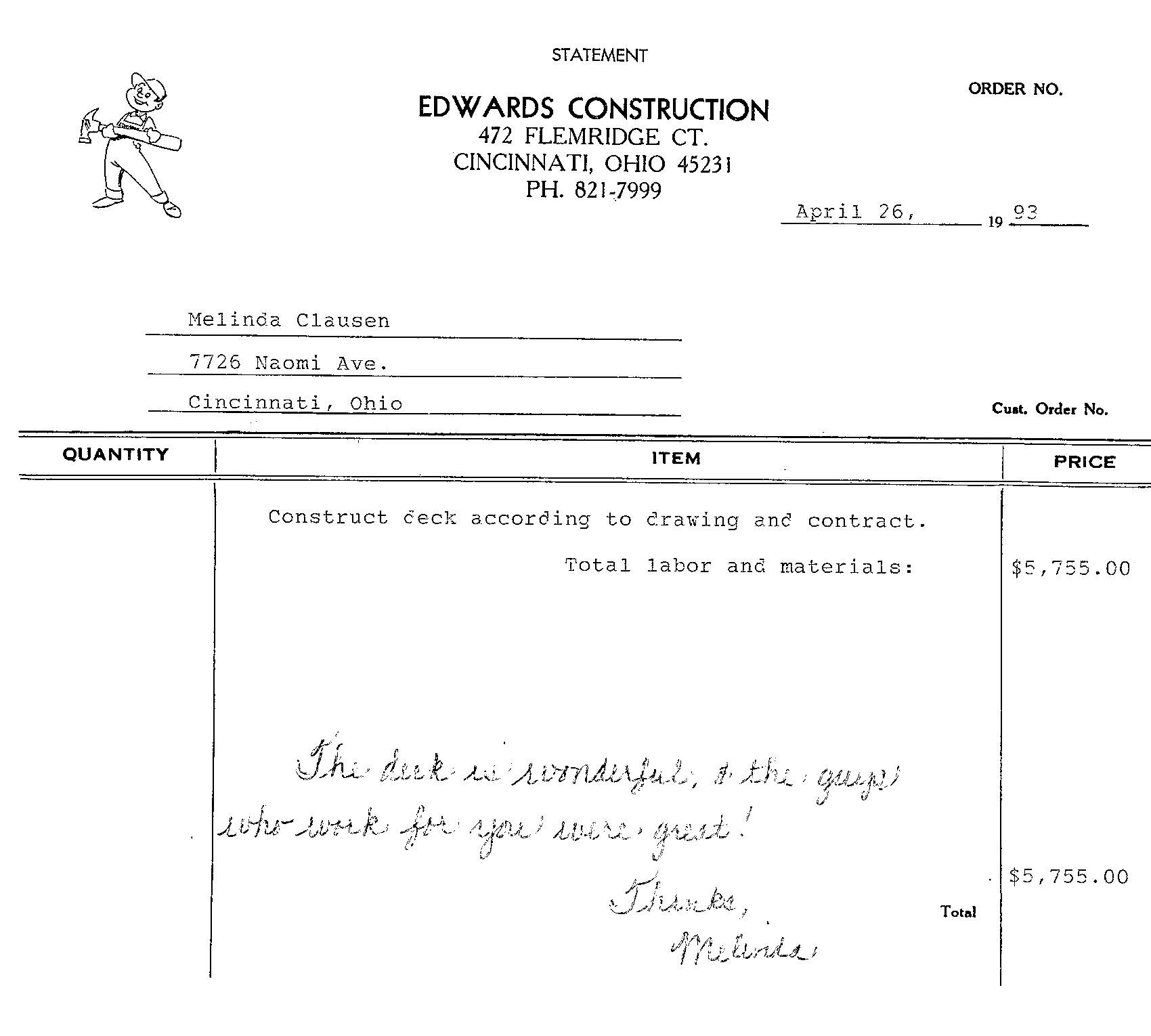 Edwards Construction Inc. has been serving customers with high-quality remodeling needs in the Cincinnati area since 1975, offering specialization in the construction of decks, porches, and basement renovations. Owner Ed Miller’s crew boasts over 40 years of construction experience, making the company “one of the oldest with the most experienced builders in the area.”